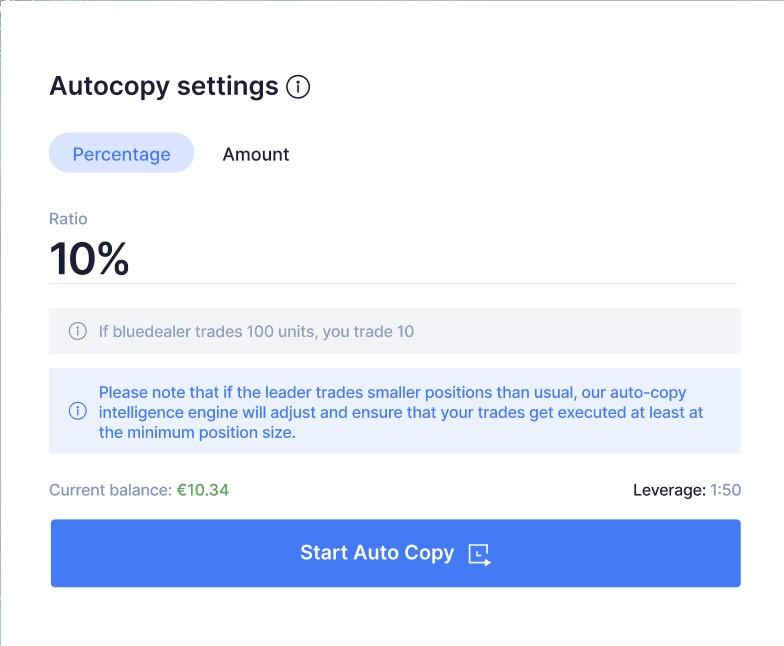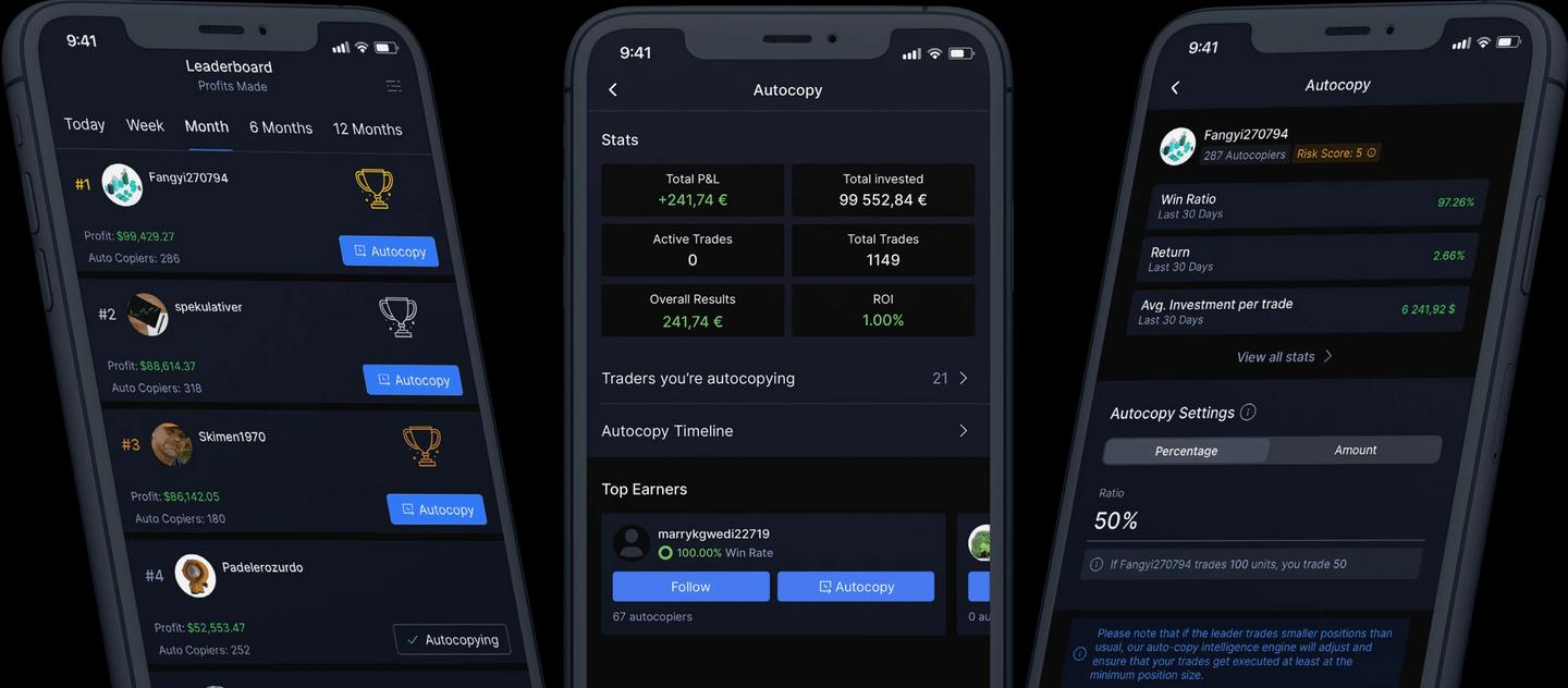 Choose the trader you’d like to Autocopy, deposit the amount of funds you’d like to allocate on the platform and Autocopy starts when approved.